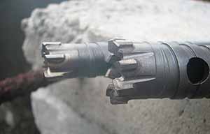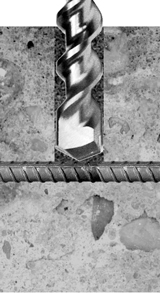 drilling through embedded rebar and the surrounding concrete. The B